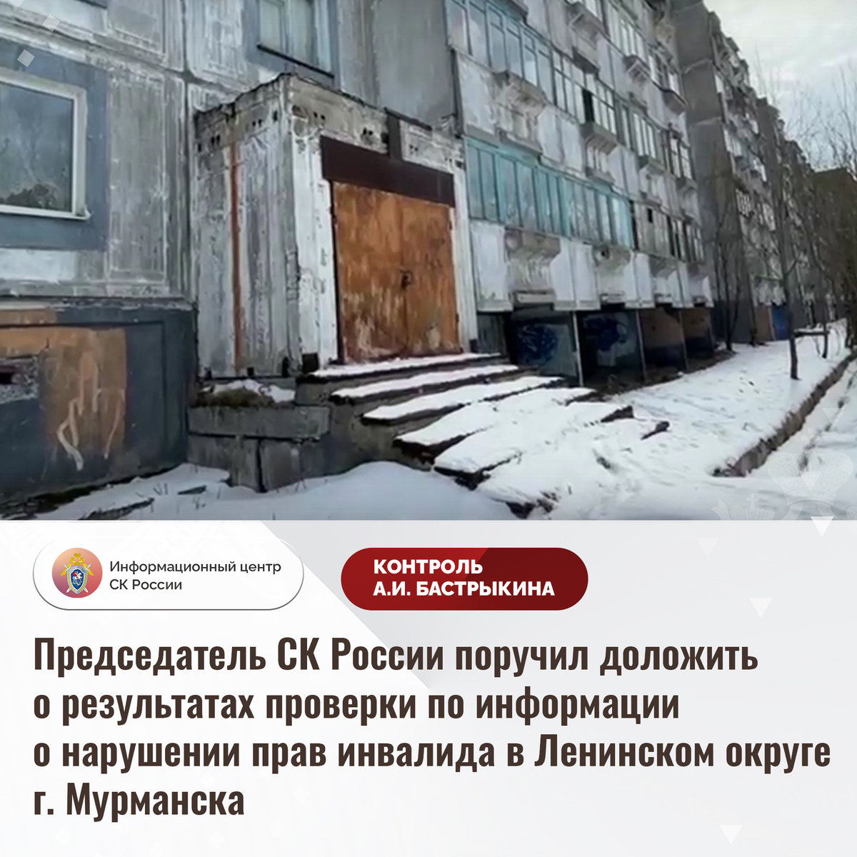 Председатель СК России поручил доложить о результатах проверки по информации о нарушении прав инвалида в Ленинском округе г. Мурманска