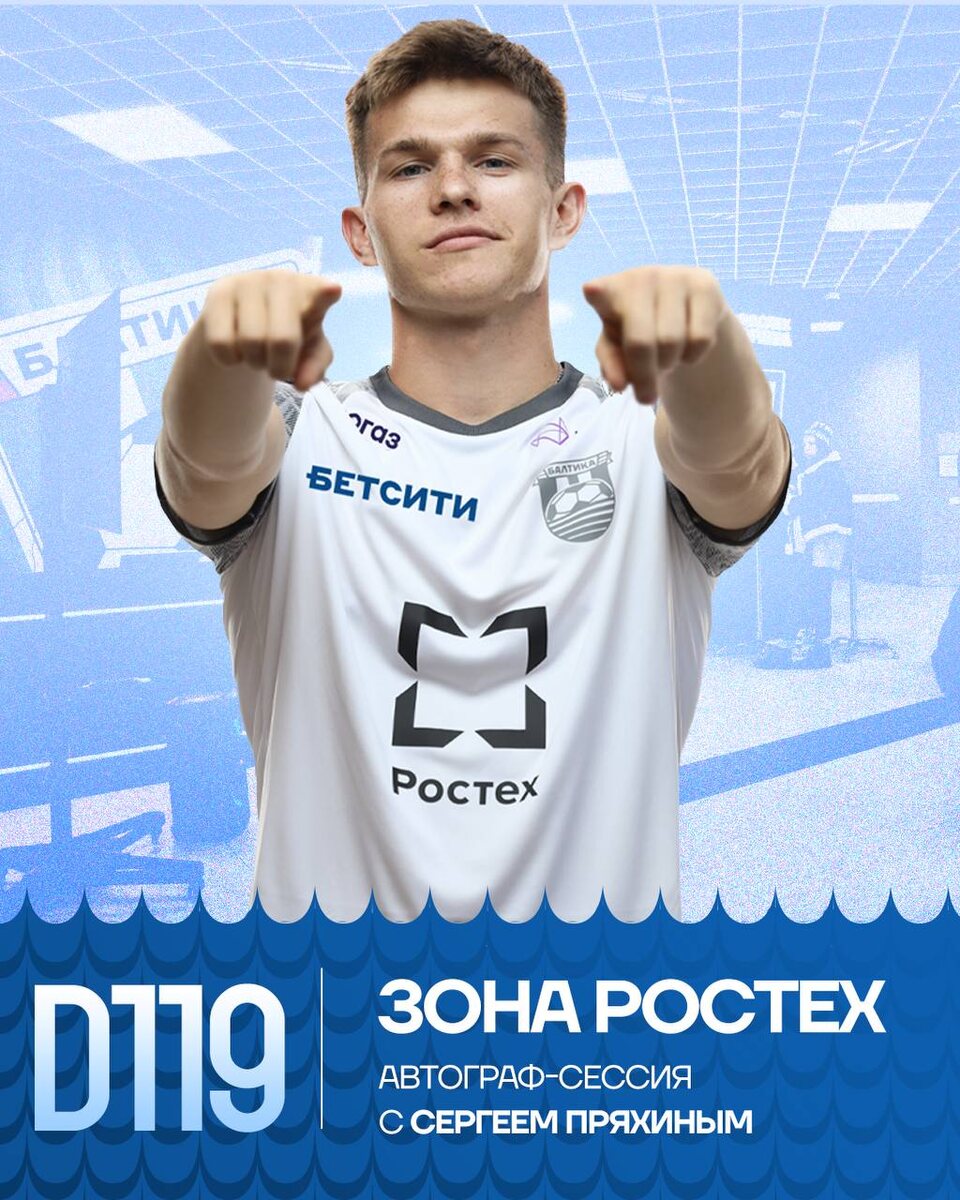 АВТОГРАФ-СЕССИЯ СЕРГЕЯ ПРЯХИНА ✍🏻 Балтийцы, сегодня Сергей будет вас ждать на D119 🤗 Настоящий заряд позитива в Ростех-зоне: автографы, теплые моменты и яркие кадры на память! 📍 D119 ⏰ 14:30 - 15:30 🎟️ Билеты на матч До встречи! 👋