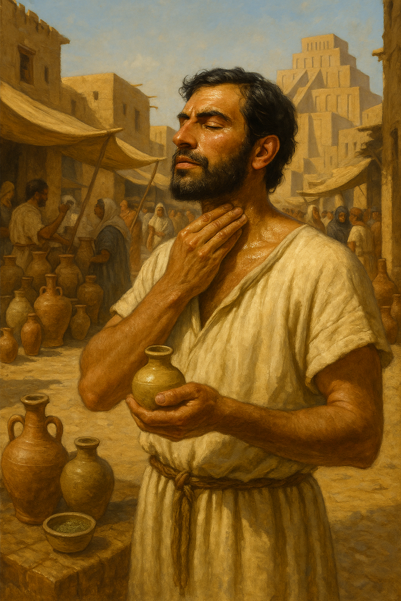 Месопотамия. Полдень. Жара, песок, шум глиняного базара. Мужчина в льняной тунике идёт навстречу женщине, надеясь впечатлить её новой причёской. Всё бы ничего — но он весь мокрый. Не от волнения. От жары. А в жару в третьем тысячелетии до нашей эры — все пахнут. И пахнут сильно.