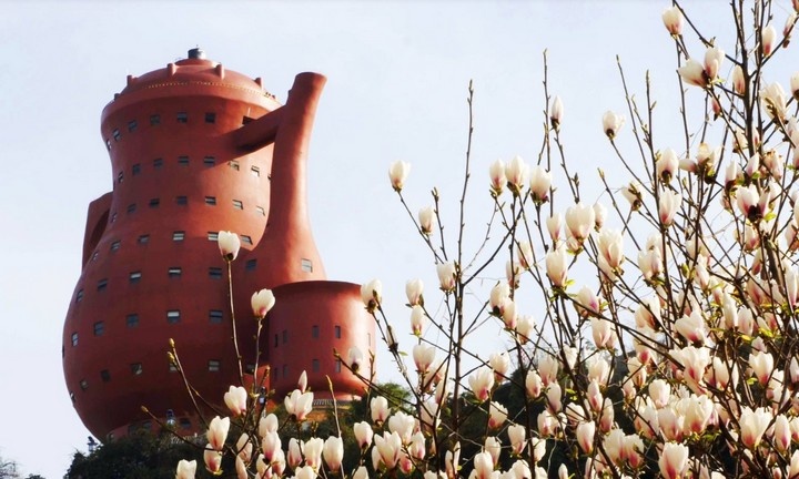 В здании высотой 74 метра и площадью более 5 тысяч квадратных метров, повторяющем очертания известной чайной принадлежности, расположился Музей чая. Неспроста музей, посвящённый чайной культуре, появился именно здесь, ведь округ Мейтан, расположенный в провинции Гуйчжоу, считается родиной китайского зеленого чая, чья известность давно перешагнула национальные границы. Мейтан также известен как «маленький Цзяннань севера Гуйчжоу». Цзяннань – район к югу от реки Янцзы, которая выступает важным географическим разделителем зон с разными характеристиками для выращивания чая. Мэйтаньский климат описывают так: «низкая широта, большая высота над уровнем моря, мало солнечных дней, много облаков и туманов». Идеальные условия для выращивания чайных растений. Гигантский чайник расположился на горе, да не один, а в дуэте с чашкой — зданием поменьше. Помимо помещений, отведенных под знакомство с историей чайной культуры и проведение чайных церемоний, в здании можно найти ресторан, арт-салон, зал инс