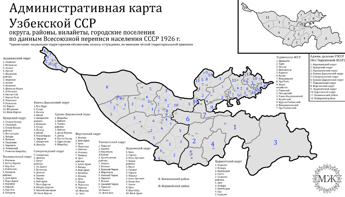 Основные изменения мы видим в Андижанском округе, Ташкентском округе, также - в Самаркандском округе. Здесь также есть интересные моменты - в районе Митан Самаркандского округа носителей языка меньше на почти 3 сотни человек. Зато в районе Паст-Даргом того же округа киргизов нет, а носителей языка - примерно столько же от тех пропавших. В Ташкентском округе в районе Верхний Чирчик же носителей языка в отличии от этноса не оказалось. Из 6 сотен человек почти все указали казакский язык как родной. В Таджикской АССР, где киргизы значительно присутствовали, изменений не наблюдается совсем.