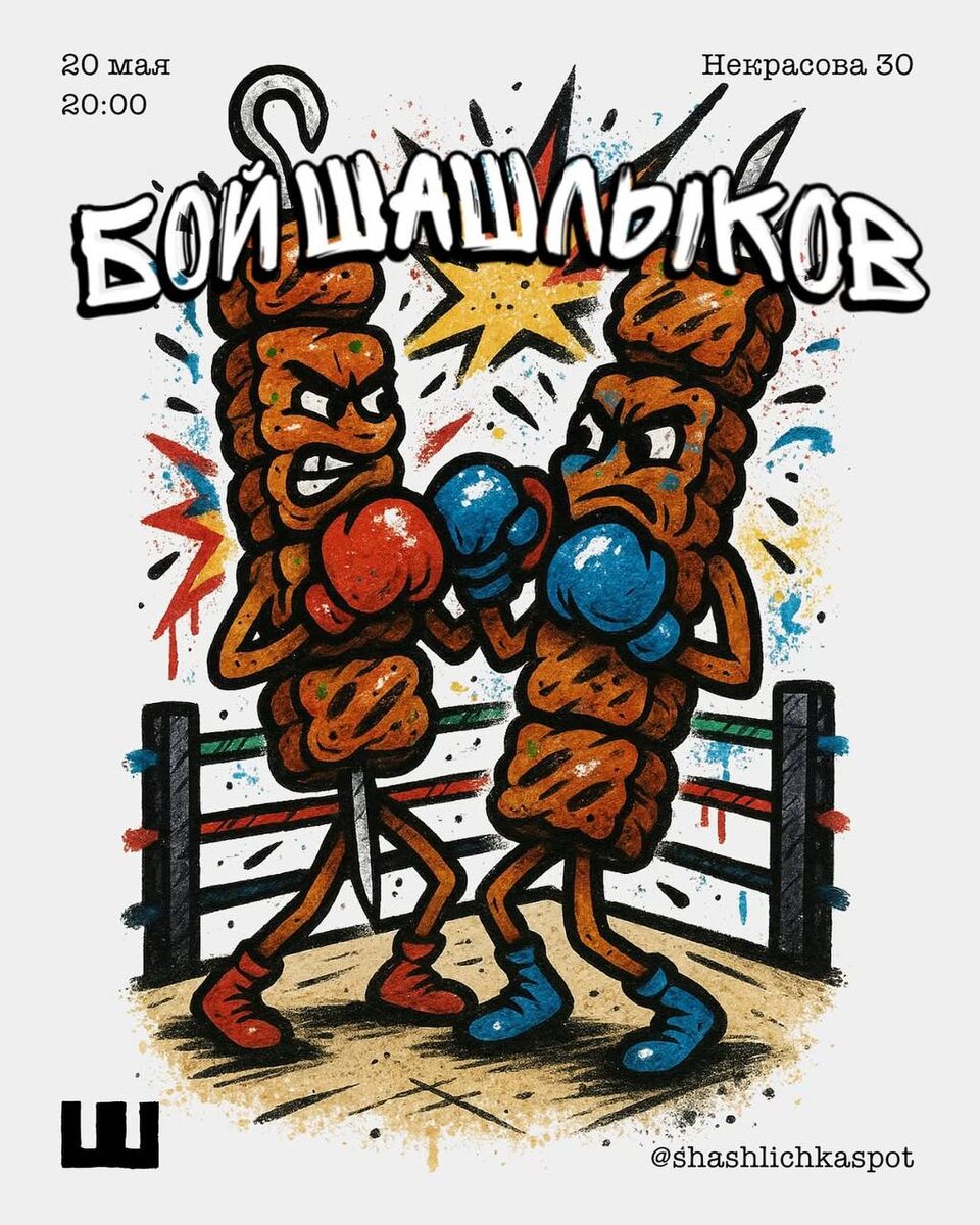 Во вторник в рюмочной пройдет турнир не на жизнь, а на смерть: серия поединков 1 на 1 — кто быстрее съест свою порцию шашлыка, тот пройдет дальше по турнирной сетке, и так до финальной победы. Приз — звание чемпиона «Шашлычки» и крутые подарки.