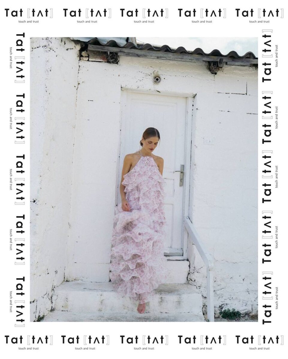 Принты — крупные розы и абстрактные мотивы, напоминающие водную флору. Натуральные ткани — шелк, крепдешин, шифон — сочетаются с тафтой, подчеркивающей форму. Цвета — мягкие, как из подводной сказки: розовый, лазурь, беж, лиловый. Коллекцию завершают объемные декоры: броши и цветы ручной работы.