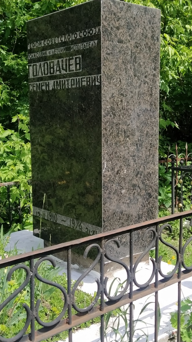 Герой Советского Союза Головачёв. Лётчик испытатель Саратовского Авиазавода. Колоссальное количество наших самолётов были испытаны Семёном Дмитриевичем. 2879 самолётов ! Общий налёт около 4500 часов! Два Ордена Ленина, два Красного Знамени, Отечественной войны 1 степени, Красной Звезды и ещё медали. В 1934 г. участвовал в перелёте авиационной делегации Москва - Вена - Рим и обратно в качестве командира экипажа.к