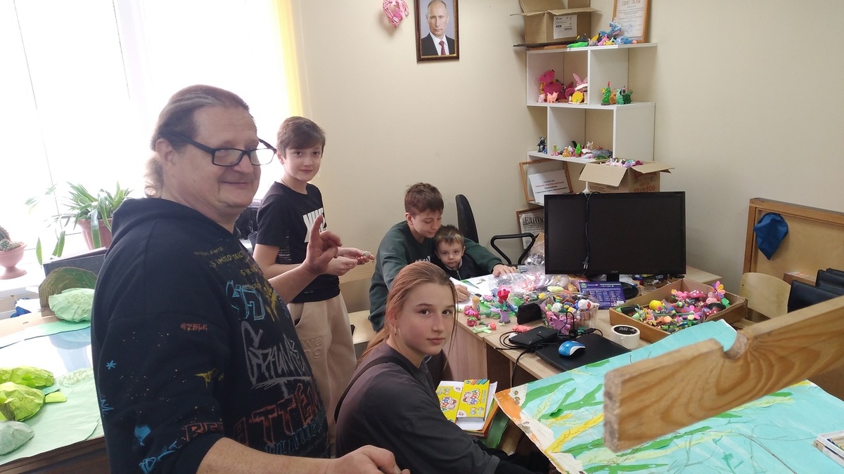 Группа аниматоров снимала мультипликационный фильм "Мечтательный лягушонок", по ходу действия добавляя в фильм подготовленных заранее героев, элементов пейзажа, различных деталей. Процесс увлек юных участников.
