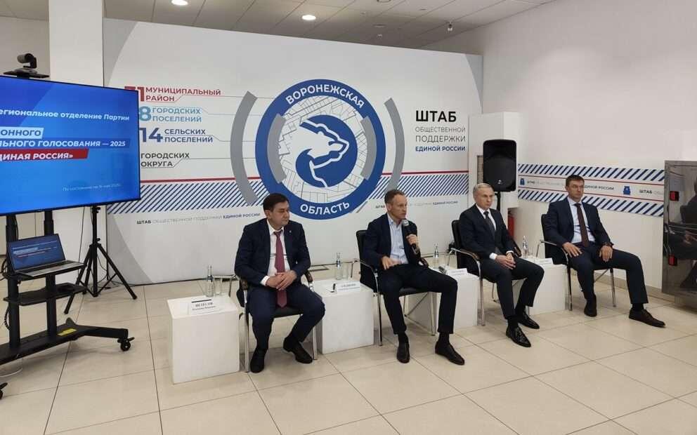 В пятницу, 16 мая, с рабочим визитом Воронеж посетил руководитель центрального исполнительного комитета партии «Единая Россия», депутат Государственной Думы Александр Сидякин. Ключевым событием поездки стало заседание регионального штаба партии. В нем помимо Александра Сидякина приняли участие врио губернатора Сергей Трухачев, председатель Воронежской областной Думы и секретарь реготделения партии Владимир Нетесов, заместитель губернатора Дмитрий Маслов, министр внутренней политики региона Елена Дерганова. На заседании была представлена информация о подготовке к электронному предварительному голосованию партии в Воронежской области перед сентябрьскими выборами. Наиболее значимые выборы — в областную (56 мест) и городскую (36 мест) Думы, а также в совет депутатов Лискинского района (45 мест). Праймериз также предусмотрены для 423 процедур, в которых могут участвовать менее 50 тысяч избирателей, на эти процедуры совокупно приходится 3755 мандатов. На предварительное голосование по отбору