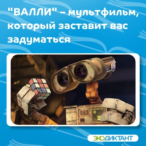 "ВАЛЛИ" – мультфильм, который заставит задуматься, как детей, так и взрослых 💥 Краткий обзор: "ВАЛЛИ" (2008) от Pixar – это не просто трогательная история про робота-уборщика и его космическое приключение. Это гениальная антиутопия о будущем Земли, погребённой под горами мусора из-за человеческого потребления. Пока люди живут на гигантском лайнере в космосе, ВАЛЛИ остаётся единственным, кто пытается очистить планету 🌱 Экопосыл: Мультфильм тонко, но жёстко критикует: Перепотребление – люди превратились в беспомощных существ, зависимых от технологий Загрязнение планеты – Земля показана как безжизненная свалка Пассивность – даже роботы в итоге "оживляют" человечество 💚 Наша оценка: 10/10! "ВАЛЛИ" – идеальный повод обсудить с детьми (и взрослыми) тему ответственности за планету. После просмотра хочется сортировать мусор, отказаться от лишнего пластика и пересмотреть свои привычки А какой фильм или книга про экологические проблемы произвели на вас самое сильное впечатление? #ЭкоК