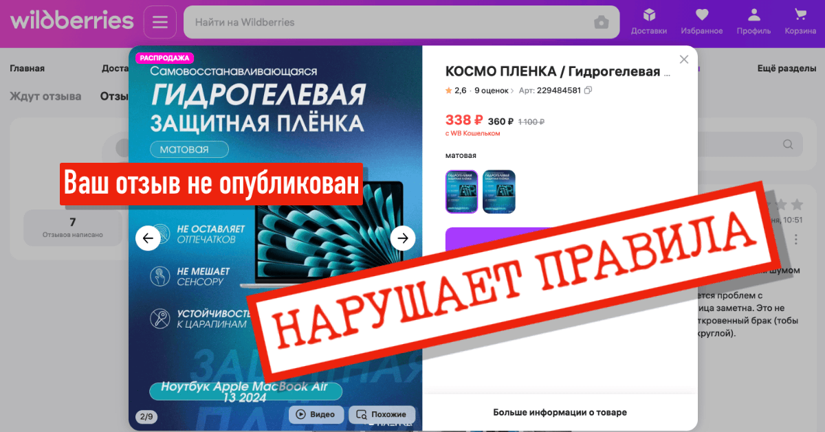 Обзор гидрогелевой защитной пленки для MacBook, удаленный с Wildberries
