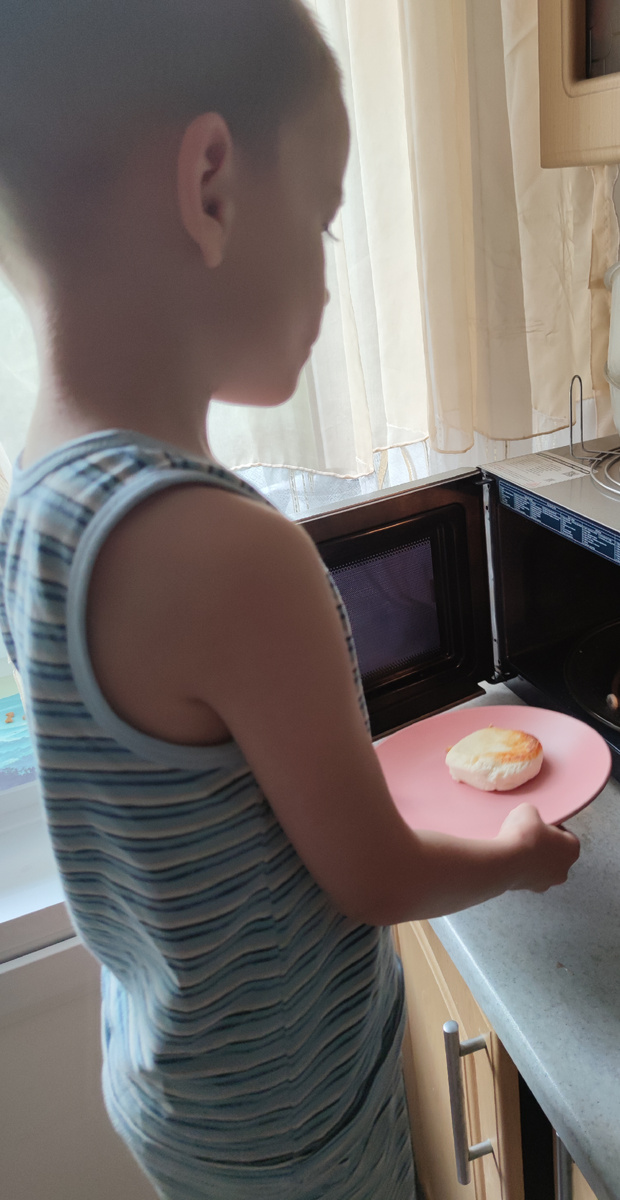 Сегодня хочу рассказать, как мы с сыном собираемся в детский садик. Тут есть два варианта: когда муж дома и когда на работе. Начну с такого утра, когда мужа нет дома. Мы встаём по будильнику в 6:30 утра и, помятые и недовольные, выходим из спальни. Первым делом, конечно же, туалетные дела. Без этого никуда. После этого начинается процесс умывания. Тут уже повеселее идёт дело. И мы окончательно просыпаемся. Так как Саша завтракает дома, то приготовить что-то вкусное - это задача, которую я стараюсь решить заранее. Обычно я готовлю завтрак с вечера, иначе мне пришлось бы вставать еще раньше. А на это, признаюсь, у меня нет ни моральных, ни физических сил. Поэтому утром завтрак достаточно только разогреть. Я стараюсь к этому привлекать Сашу. Он либо сам раскладывает еду по тарелкам, либо я. А дальше он в любом случае сам всё разогревает в микроволновке, а потом накрывает на стол. В это время я привожу себя в порядок перед работой, но одним глазом наблюдаю за сыном. Мой маленький хо