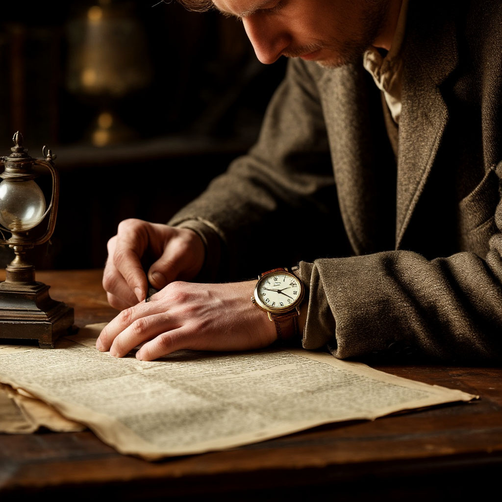 Он сел за стол и взял в руки старинные часы. Он внимательно их осмотрел, словно знакомясь с ними заново. Он почувствовал, как его руки согреваются, как в его душе появляется вдохновение.