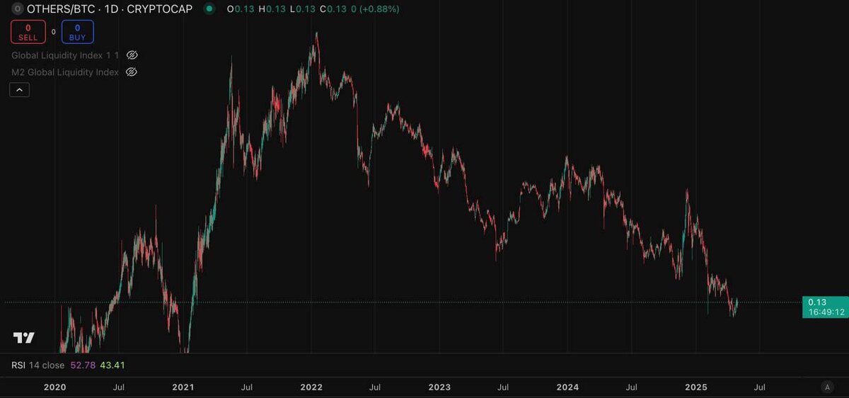 😅 The market's looking a bit worn out: drops are a bust, sales aren't popping, and altcoins are just chilling. Vibe check—pure indifference. The OTHERS/BTC chart screams apathy. But hey, it’s during these moments that the best entry points emerge! Expectations are at an all-time low—and that's actually a good thing. The market has done its thing. Those who weather this phase will be the ones raking in those sweet gains on the next upswing! 💸🚀 #CryptoWisdom