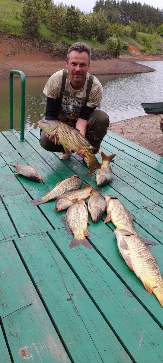Всем 🦦 Был выезд по трудной задаче, такой рыбалкой я ещё не занимался. Цель задачи поймать особей по крупнее и переселить в другой водоём. Как назло клевали практически одинаковые (в районе от 2 до 3 кг), мамку поймать не получилось. Много сходов, куча нервов, без сонная ночь, куча дуплетов, обрывы. К такой рыбалке не готов от слова совсем. Ну десяток наковырять получилось. Крайний карпик, самый большой, пойман последним. По весу ближе к 4 кг, клюнул когда нужно было отойти. По возвращению я обнаружил что весь мой шмурдяк в воде, фидер зацепился за подсак а подсак за пирс. После вываживания рыбы пришлось долго подсаком вылавливать вещи, среди которых были весы. По этому общий вес и вес биг фиша этой рыбалки не известны. Адреналина хапнул, кайф получен, рыбалкой доволен. P. S. Спасибо за рыбалку Антон Токмянников Источник