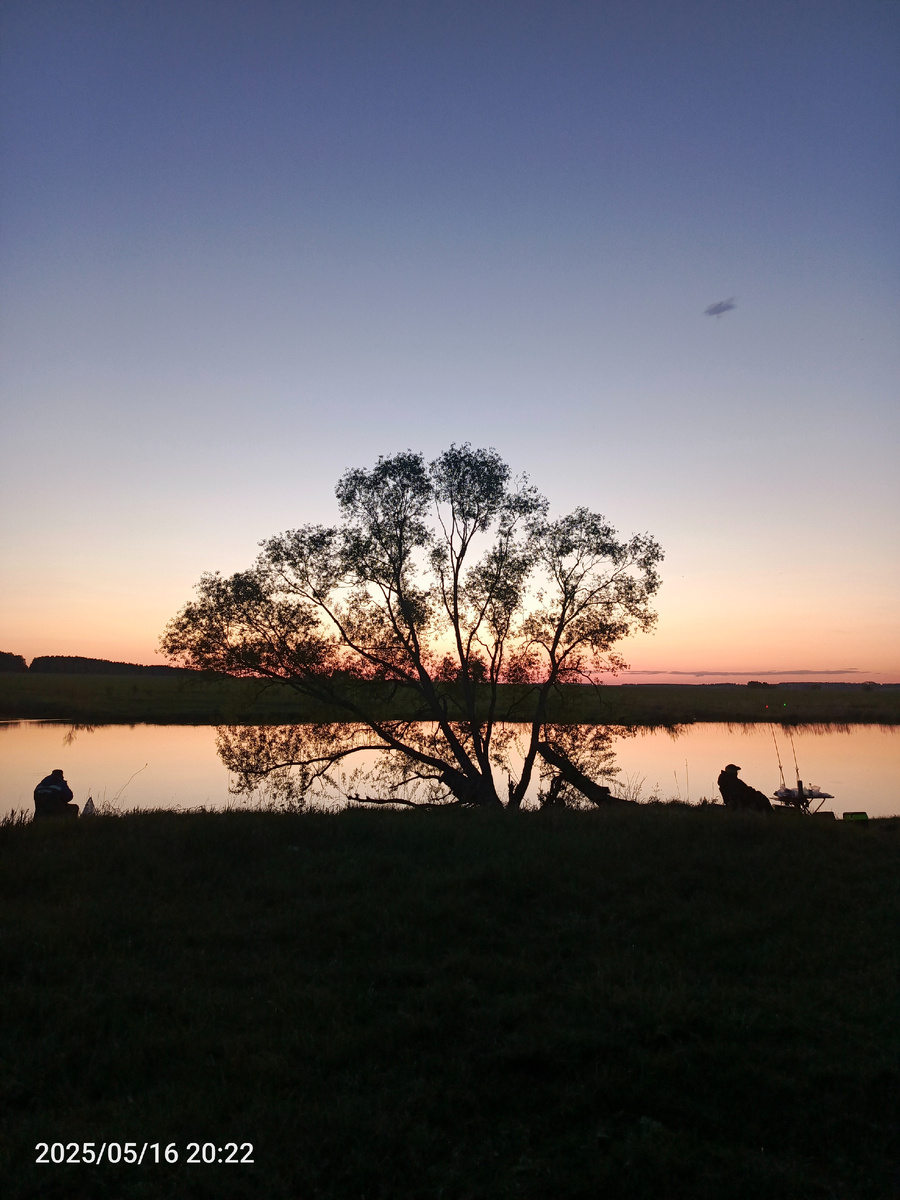 То и дело с неба падают звёздочки. Это матушка земля вошла в метеорный поток Эта-Аквариды. * Эта-Аквариды связаны с кометой Галлея. Ежегодно Земля проходит через шлейф пылевых частиц, оставленных этой кометой. При вхождении в атмосферу они сгорают, создавая эффект «падающих звёзд». Красиво. Поклёвка у Константина. Лечу туда. Хватаю фидер- ручка, ручка не стой стороны что у меня, Кручу ,поклёвка на его соседний фидер. На этом сход, подсекаю второй. Реализовал, и отправил в подсак. Перезабросился и сев на стульчик окунулся в фон ночи. Николаевич даже и не слышит , дрыхнит в тёплом спальнике. Шир шир позади меня, легкий холодок по спине и чуть мурашек)). Лиса пришла и села чуть по одоль меня. Пришлось пожертвовать сосисоном. Схватив добычу та растворилась в темноте. Поклёвка у Николаича и я реализовываю её. Время уже почти 00.00. Посидев ещё чутка и не дождавшись поклёвок я побрёл в машину к к Константину. - А что ,кто!!!Ё, перепугал я усатого. - Чё там, клюёт а?- Одного упустил один у тебя в подсаке. -А хорошо угу ,угу,хррр... Сбил я сон Константину, чуть поворочавшись он засобирался на берег.- Иди назад спать, уложил меня Константин чуть ли не укутав в свой спальник. - Иди ,иди улягусь я не маленький. - А чё ты как не родной, снимай башмаки, кутайся подушка вон там.-Ушёл на берег.