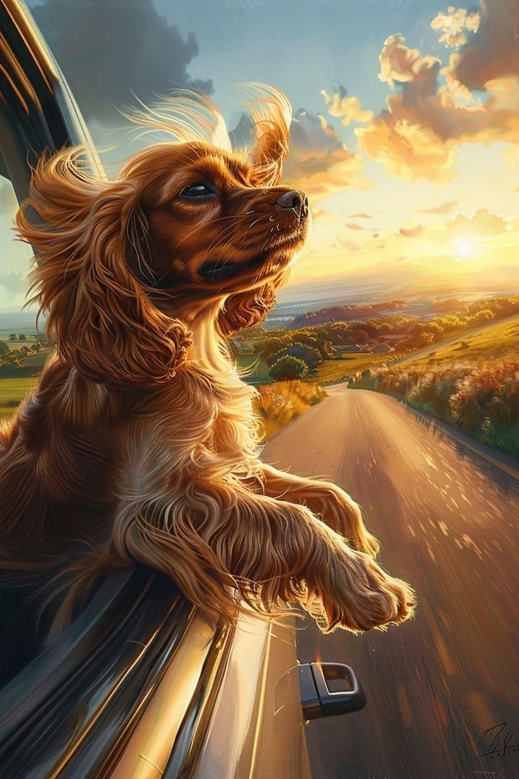 Дорога вилась лентой через бескрайние поля, где золотистая пшеница переливалась на солнце, будто море из света. Воздух пах теплом, полынью и мёдом , таким густым, что его можно было почти попробовать. Вета опустила окно, и ветер ворвался в салон, смешиваясь с запахом кожи сидений и собачьей шерсти.