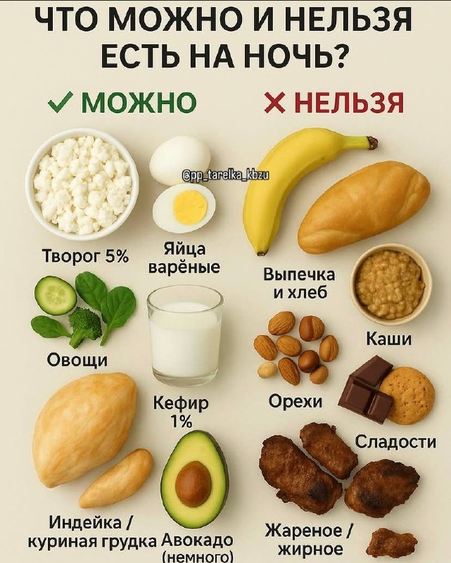 Вот вдогонку показываю те продукты, которые нежелательно есть на ночь, а какие можно🤗