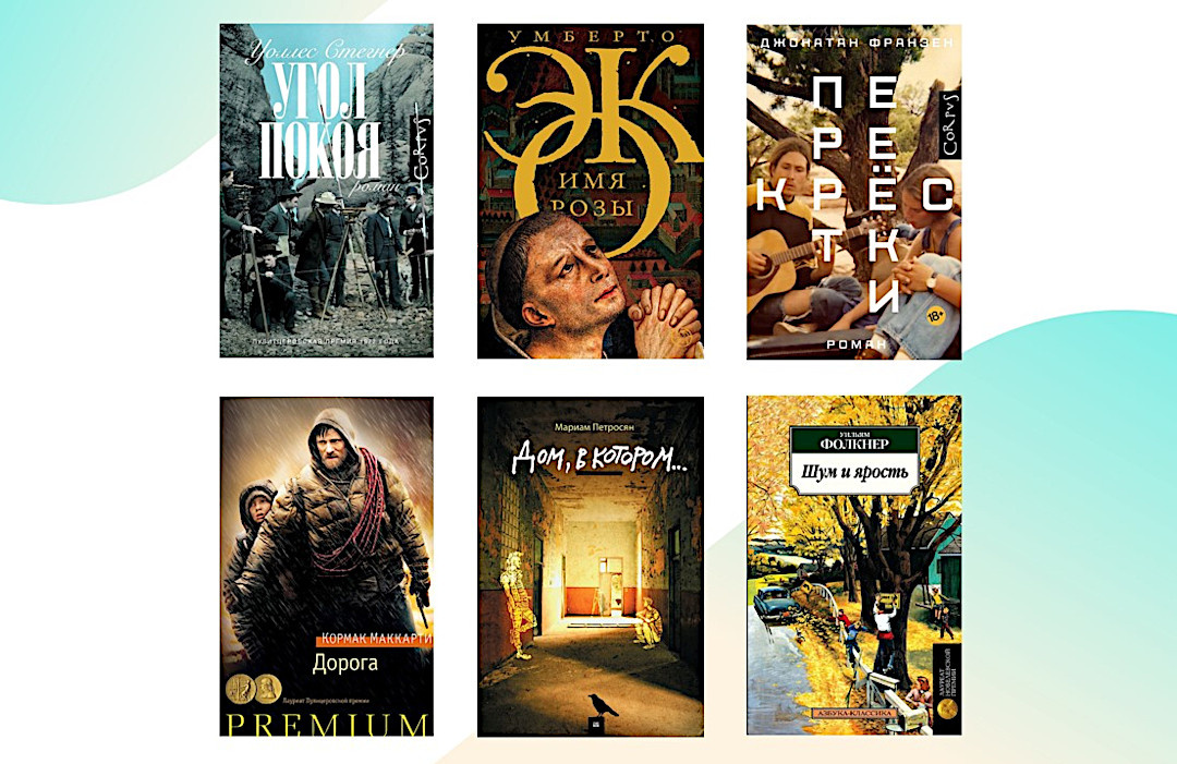 Огромное спасибо всем читательницам за прекрасные отзывы! Из шести книг из подборки я читала три — «Поправки» Джонатана Франзена, «Шум и ярость» Уильяма Фолкнера и «Угол покоя» Уоллеса Стегнера. Безусловно, это Литература с большой буквы. Книги, которые я не читала, — Кормак Маккарти «Дорога», Умберто Эко «Имя розы» и Мариам Петросян «Дом, в котором…» — мне захотелось прочитать. Маккарти и Эко так и так были в планах. А вот отзыв о романе Мариам Петросян, наверное, лучший и самый убедительный из всех, которые я об этой книге читала.