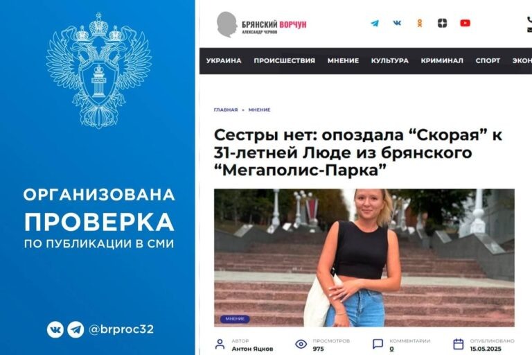 Публикация на сайте “Брянского ворчуна” о наверняка несвоевременном и ненадлежащем оказании скорой медицинской помощи 31-летней Людмиле Осипенко из микрорайона “Мегаполис-Парк” в 2-х километрах от Брянска вызвала широкий общественный резонанс. И побудила местную прокуратуру провести проверку описанных сведений, приведших к трагедии. Прокуратура Советского района города Брянска заинтересовалась в ходе проводимого мониторинга СМИ позавчерашней публикацией “Брянского ворчуна” под названием “Сестры нет: опоздала “Скорая” к 31-летней Люде из брянского “Мегаполис-Парка””. В ней говорится о явно несвоевременном и ненадлежащем оказании скорой медицинской помощи молодой уроженке Новозыбкова Людмиле Осипенко, умершей в первой городской больнице Брянска через несколько часов после доставки ее бригадой медиков из неотложки. Людмила – цветущая еще за два дня до смерти молодая женщина – почувствовала себя резко плохо после укуса соседской собаки породы такса. На что не обратила особого внимания – ме