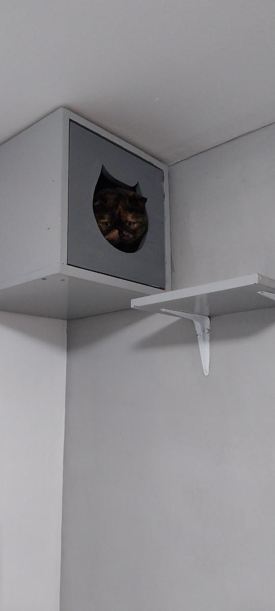Хотя нет, не первым делом, сперва она поела и вытребовала себе вкусняшек, которые во рту унесла в домик, как белка, и там съела 😹