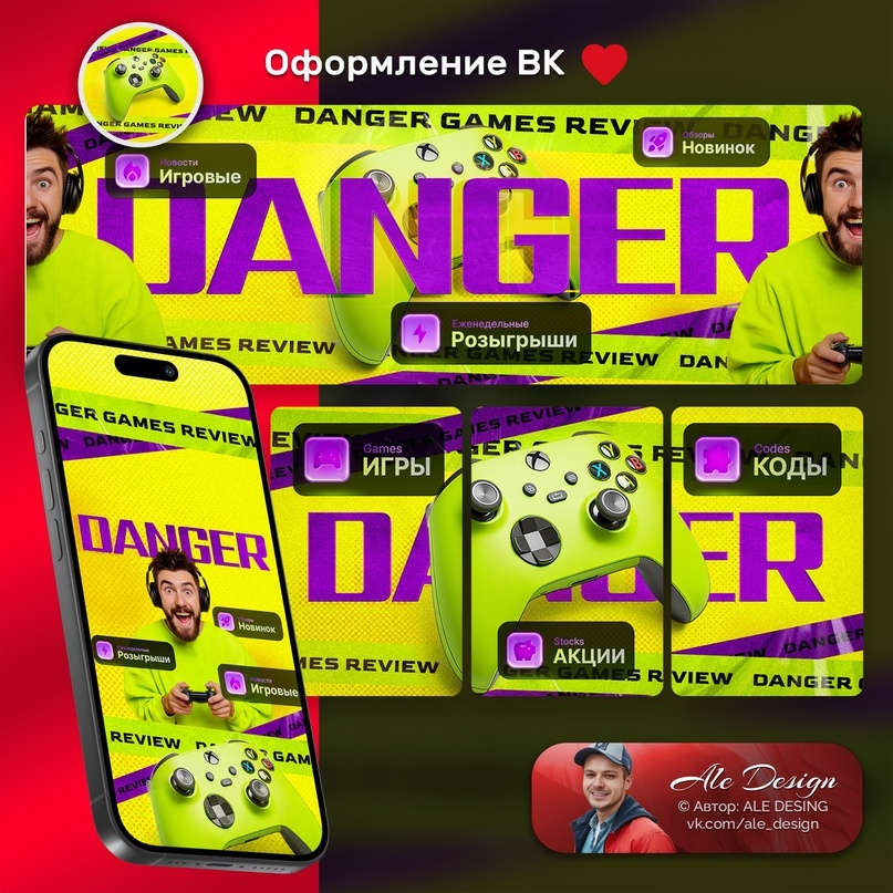 Недавно мне поступил интересный заказ на оформление сообщества ВКонтакте, посвящённого обзорам видеоигр. Заказчик хотел создать яркий и запоминающийся дизайн, который бы отражал тематику игр и привлекал внимание пользователей. В этой статье я расскажу, как проходил процесс создания дизайна и какие решения были приняты. Техническое задание Заказчица выразила желание видеть оформление в светлых тонах с акцентами на жёлтый, лаймовый и фиолетовый цвета. Название сообщества должно было быть крупным и заметным, а также важно было подчеркнуть тематику видеоигр. В дизайне должны были присутствовать элементы, связанные с играми, такие как контроллеры и персонажи. Анализ и концепция Для начала я провёл анализ целевой аудитории и конкурентов. Важно было создать дизайн, который бы выделялся на фоне других сообществ, но при этом оставался узнаваемым и привлекательным. Я решил использовать сочетание кислотных оттенков, чтобы создать динамичный и современный стиль. Цветовая палитра Я выбрал жёлтый к
