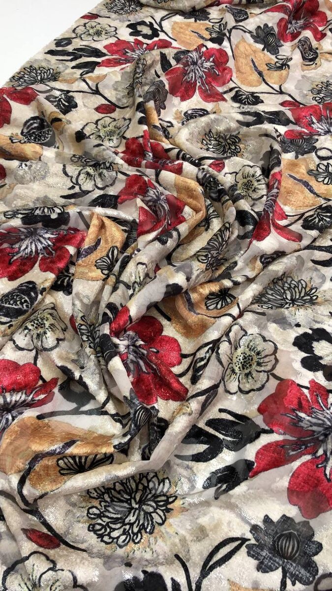 🇮🇹 Бархат деворе с деликатным люрексом в тон основы, который повторяет цветочный принт на ткани