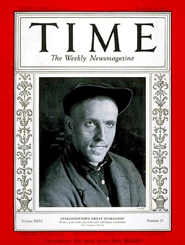 Журнал Time, 1935 год. На обложке Алексей Стаханов.