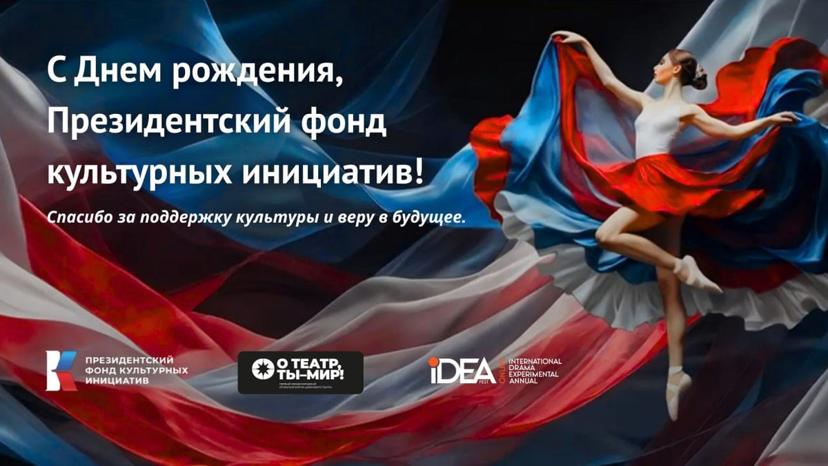 17 мая — День рождения Президентского фонда культурных инициатив За четыре года своего существования Президентский фонд культурных инициатив успел помочь огромному количеству инициативных команд и организаций — тем, кто стремится внести значимый вклад в будущее России и ее диалог с другими культурами мира. ❤️ПФКИ — это команда экспертов, готовых поддержать проекты, которые, по их мнению, реально меняют культурный ландшафт нашей страны. Мы признательны Фонду за финансовую поддержку наших проектов, чуткое кураторское сопровождение и возможности развития и обучения в области культурного менеджмента✨ Благодаря поддержке ПФКИ нами были реализованы: масштабный всероссийский региональный проект в сфере цифрового театра «Островский OnLIFE: сквозь время и расстояние», инклюзивный проект на жестовом языке с участием неслышащего актера «Пугачев», а в настоящее время Первый открытый международный форум цифрового театра «О театр, ты — мир!» объединяет в интернете русскоязычные театры и экспертн