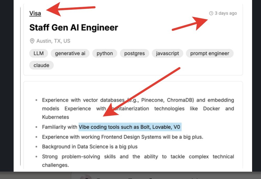 Смотрите, кого гиганты начинают искать в штат -> Вайб, прости-меня-господи-грешного, кодера :) А ищет Виза