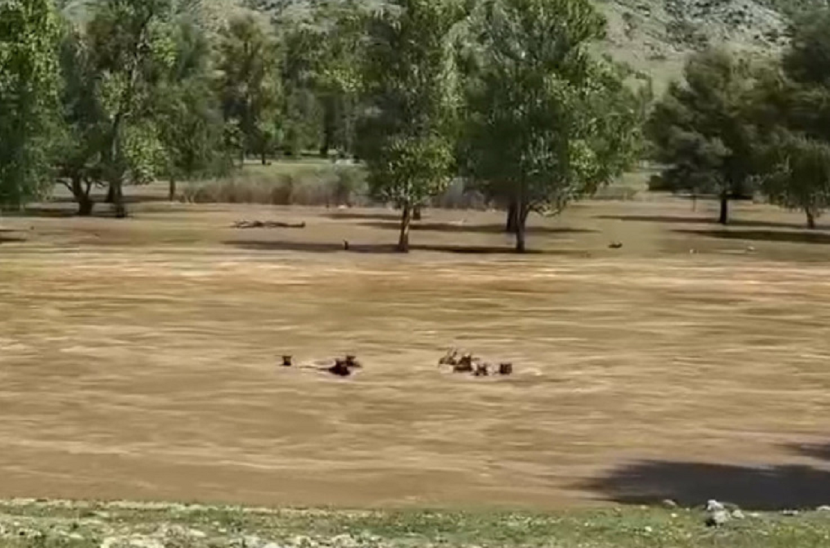 В Чулышманской долине Алтая поток воды смыл табун лошадей вместе с жеребенком