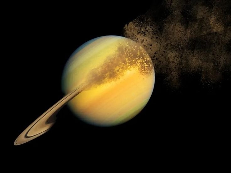 Кольца Сатурна — прощальная симфония великого гиганта Когда мы думаем о Сатурне, первое, что возникает в воображении — его великолепные, сияющие кольца. Это визитная карточка планеты, объект вдохновения художников, поэтов и учёных. Но мало кто знает, что эти кольца не вечны. Более того — они исчезают прямо сейчас, и мы живём в уникальное время, когда можем видеть их во всей красе. Что же происходит с кольцами Сатурна? Почему они исчезают? И что ждёт планету в будущем? На расстоянии в более чем 1,4 миллиарда километров от Солнца Сатурн кажется далёким и загадочным. Его кольца — не сплошной диск, а множество колец, сотканных из льда, пыли и камней, от микроскопических частиц до глыб размером с дом. Кто разрушает кольца? Казалось бы, в пустоте космоса кольца могли бы существовать миллиарды лет. Но… увы. Основной разрушитель колец — это сама гравитация Сатурна и космическая пыль. ☄ 1. «Кольцевой дождь» НАСА обнаружило, что кольца буквально падают на планету. Скорость потерь — от 432 до 28