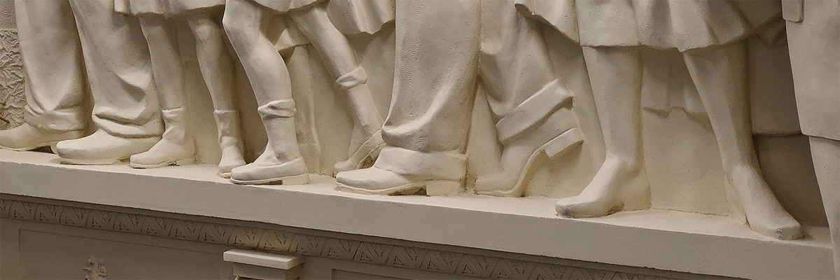 В этой статье я не буду говорить ни о художественной композиции, ни о естественности поз, ни о своем отношении к Сталину. Поговорим о причудах природы. Именно на них я советую обратить внимание в нашей композиции. Тщательно прорисованная обувь почти всех персонажей лишь подчеркивает единственное исключение – женщина, с интегрированными в ступни органическими каблуками. Интересно, какого же греха этот мутантский плод.