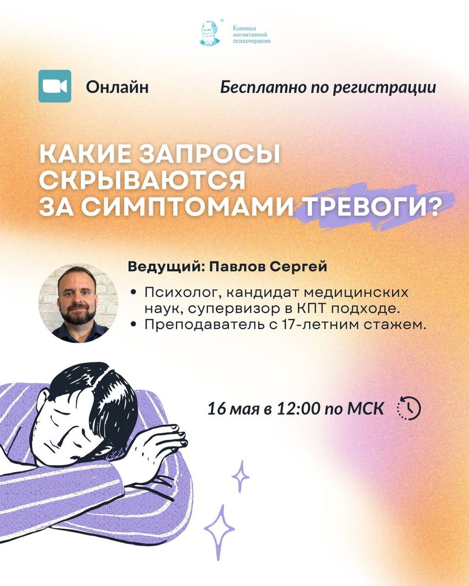 ЗАПИСЬ ПРЯМОГО ЭФИРА Какие запросы скрываются за симптомами тревоги? На эфире разобрали 👇 🟢Какие тревожные симптомы скрываются за запросами клиентов? 🟣Почему простая работа с симптомом часто не приводит к устойчивым изменениям? 🟡Как в КПТ мы подходим к диагностике, концептуализации и выбору интервенций? И многое другое! 📱 СМОТРЕТЬ ВК 📱 СМОТРЕТЬ YOUTUBE