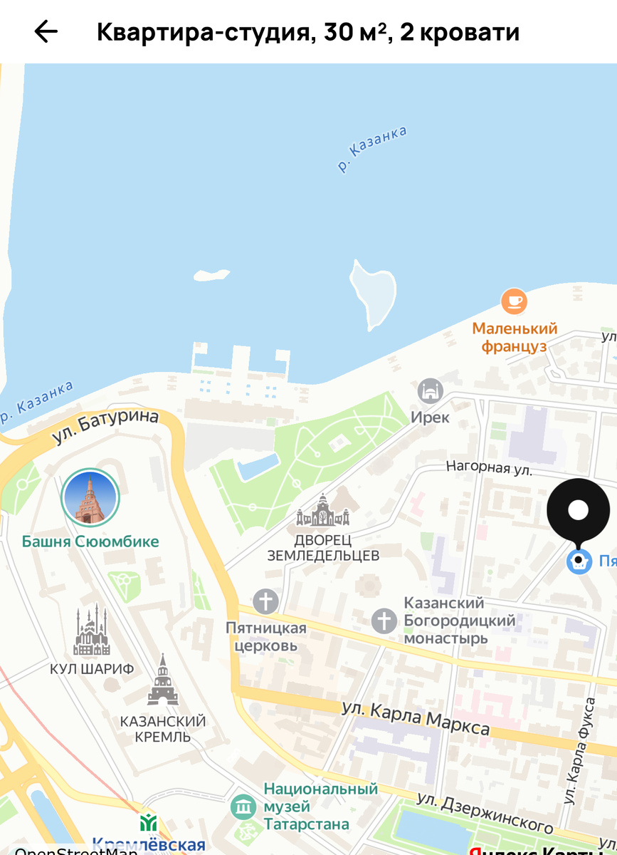 Поскольку в Казань мы собирались только втроем с сыновьями, я рассматривала для проживания студию где-то в центральном районе как можно ближе к Казанскому Кремлю.