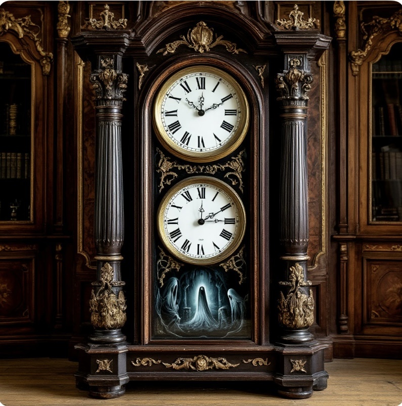 Часы, которые съели время. Исповедь механизма, застрявшего между „было“ и „почти“. Меня звали Вечность в Шестернях. Я родился в мастерской слепого часовщика Генриха, который продал мне душу, чтобы выковать идеальный механизм. Граф Лучезар купил меня за мешок алмазов и крик совы, пойманной в полночь. С тех пор я висел на башне Этерниса, отсчитывая секунды до той минуты, когда время перестало иметь значение. Как я стал тюрьмой для мгновений — Первые годы: Я звонил каждый час, и дворец замирал, слушая мои удары. Элиана танцевала под мой вальс, а Лучезар сверял по мне пульс своего творения. — Роковая настройка:После смерти Элианы граф вскрыл мой циферблат и вырвал стрелки. *«Остановись тут, на грани „почти“», — прошептал он. — «Она ещё вернётся»*. — Проклятие:С тех пор я застыл на 11:59. Мои шестерни скрипят, пытаясь двинуться, но каждый раз зубцы цепляются за тень Элианы, которая вплетена в механизм. Обитатели моей груди 1. Генрих, слепой часовщик: Его дух прикован к шестерёнке «С
