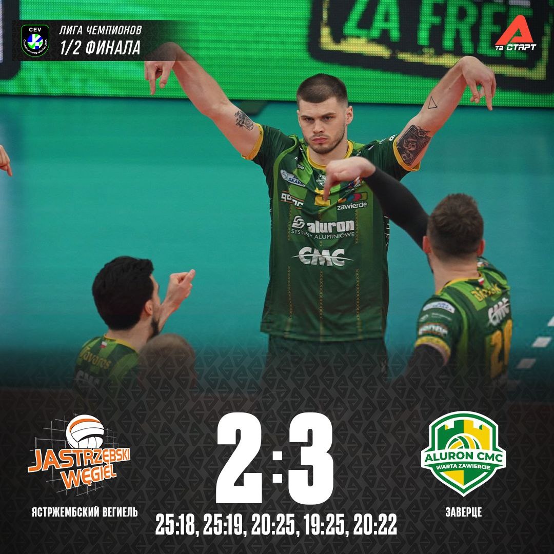 Спаслись с 0:2 по партиям и не пустили «Ястржембский Вегиель» в третий финал Лиги Чемпионов подряд. Победа на тай-брейке – 18:25, 19:25, 25:20, 25:19, 22:20.