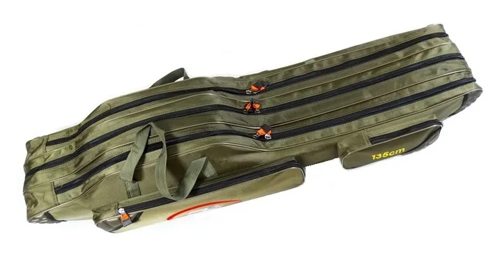 - Если требуется переносить зонт, подсачек, фидерные армы, выбирайте чехлы с карманами или боковыми отделениями. Это особенно важно для рыбалки без автомобиля.