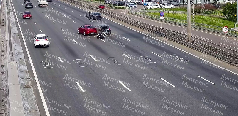 Шокирующая дорожная авария произошла в субботу днем на Московской кольцевой автодороге. Видеозапись инцидента, в котором мотоциклист буквально взлетает в воздух после столкновения с остановившимся автомобилем, опубликована в телеграм-канале «Дептранс. Оперативно». По данным столичного Дептранса, черный Hyundai Solaris внезапно остановился во второй полосе движения. Автомобили объезжали его. На опубликованной записи видно, как черный кроссовер и ехавший за ним красный Kia Rio в последний момент обруливают аварийный автомобиль, а мужчина, двигавшийся на мотоцикле Honda позади на высокой скорости, не успел затормозить и врезался в Hyundai Solaris. Сила удара была настолько велика, что мотоциклист вмял задний бампер, пробил стекло иномарки и подлетел в воздух на пару метров. После этого байкер приземлился в соседнем ряду прямо перед остановившимся автомобилем Kia Rio. От полученных травм водитель мотоцикла скончался на месте. Пассажиры других автомобилей не пострадали. Представители столич