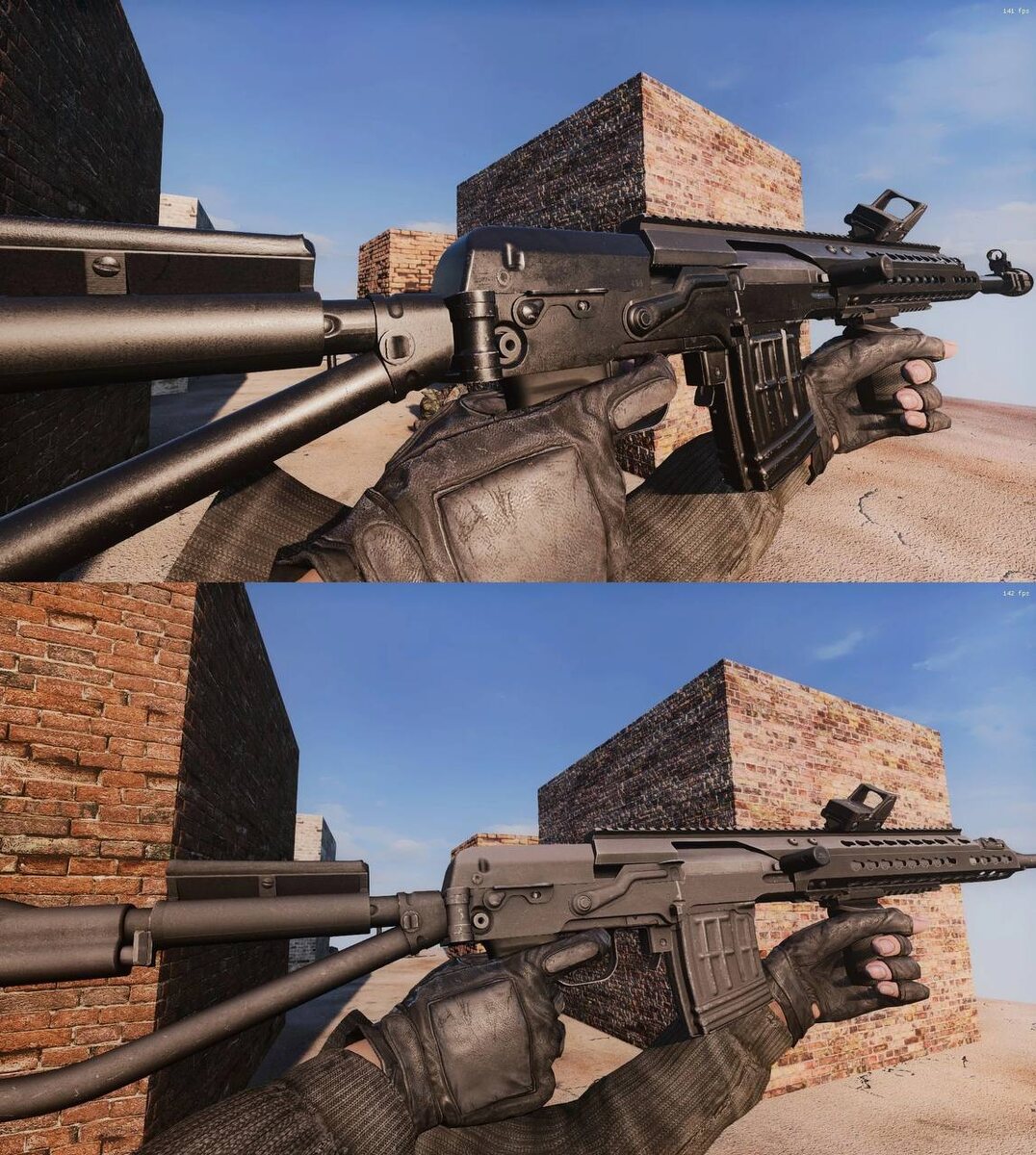 ☢️ Авторы Anomaly Custom показали результаты работы над ретекстуром оружия. Работа будет включать в себя обновленные отражения кубмапов и бампы, изменение формата сохранения текстур с dxt1 на dxt5. На скриншотах можно увидеть наглядное сравнение (сверху - новая версия, снизу - оригинал).