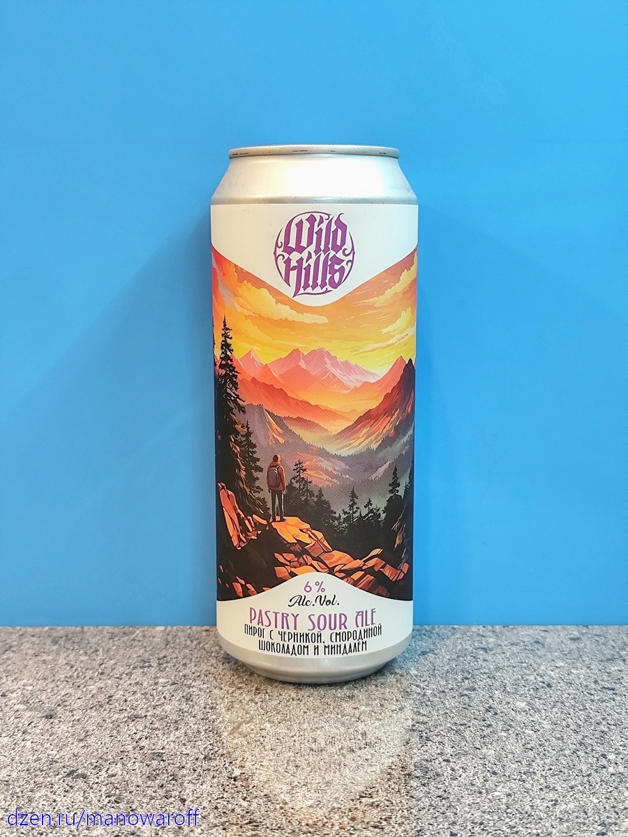 Ибо пирог у нас будет в виде пива под названием "Пирог с черникой, смородиной, шоколадом и миндалем" от московской пивоварни Wild Hills Brewery. Дебют этого пастри-кисляка состоялся в июле прошлого года. Посмотрим, что нам о нем расскажут: Третий пирог в линейке наших кондитерских кислых элей стал универсальным напитком как еще теплым летом, так и для встречи наступающей поздней осени 🍁 Эль прекрасно дополнит вечер в домашнем тепле и уюте за просмотром любимого фильма, наполнит все вокруг ароматом свежеиспеченного пирога 🥧 Ягодный дуэт отлично сочетается с шоколадом и терпким миндалем, создавая богатый вкус и долгое послевкусие напитка🥰 Приятного аппетита 😋 У меня банка из октябрьской партии, а вскрыл я ее через семь месяцев после розлива. Хранилась она в дальнем углу холодильника, поэтому, когда до нее дошла очередь, оказалось, что пиво просрочено на месяц. Сильно сомнительно, что с ним что-то случилось, особенно учитывая наличие консервантов в составе, но все же всякое может быт