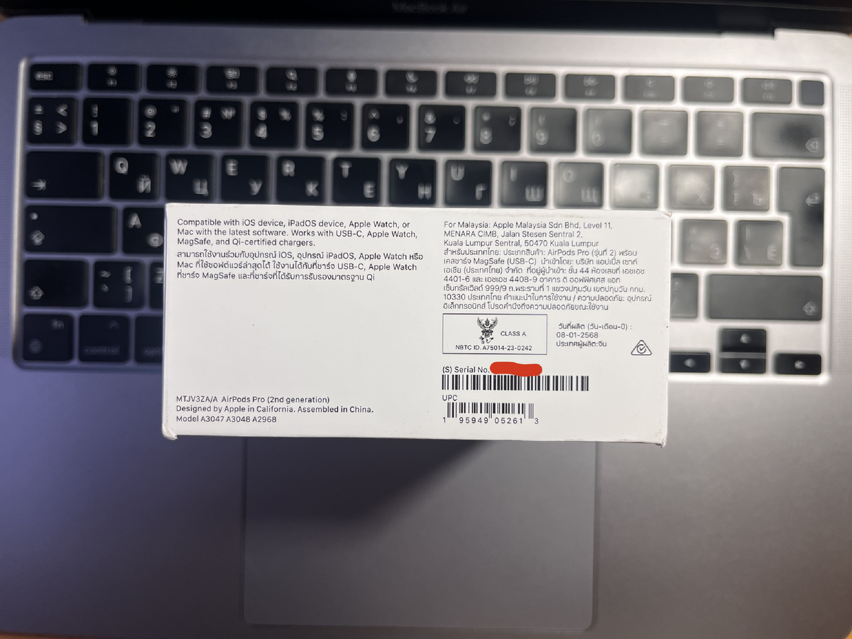 Наушники от Apple самые популярные на рынке, не удивительно, что их подделывают направо и налево. Поэтому, при покупке в неофициальном сертифицированном магазине Apple, надо быть начеку. Конечно же переплачивать не хочется, но что сделать, чтобы свести риски к минимуму? Об этом я написал в отдельной статье: Сегодня же речь пойдет о моем личном опыте покупки AirPods Pro 2nd generation и с каким сюрпризом мне пришлось столкнуться. Итак, обо всем по порядку. Мои наушники начали уставать и я заказал себе AirPods Pro на известном маркетплейсе с доставкой из-за рубежа. Приехали на удивление быстро: 12-го числа заказ, 15-го уже лежали в пункте выдачи. Получаю свой заказ. Прошу проверить на месте. Мне дают ножницы. Вскрываю транспортную упаковку и перехожу к проверке по чек-листу. Дохожу до технической информации на коробке и тут... Раньше во время спокойствия и официального присутствия Apple в РФ такая информация могла быть только на стикерах и наклеена коробку. Все что печаталось было па