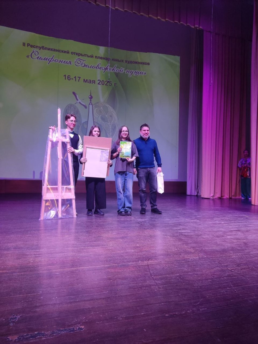 В г. Свислочь завершился II Республиканский пленэр юных художников "Симфония Беловежской пущи". ▪️Пленэр проходил при поддержке Министерства культуры и Белорусского союза художников. В этом году пленэр посвящен 80-летию Великой Победы. Столинскую ДШИ представляли учащихся художественного отделения Вабищевич Лилия и Пенёра Виктория - учитель Кристина Сергеевна Строк. ▪️Девочки прошли этап отбора и были приглашены на пленэр. Ребята в течение двух дней, 17 и 18 мая, работали на натуре в Свислочском районе и написали по две тематические работы. Вабищевич Лилия награждена Дипломом Лауреата 1 степени и памятными подарками, Пенёра Виктория получила Грамоту за участие. Учитель Кристина Сергеевна Строк Благодарностью за педагогическое мастерство. ▪️В рамках конкурса прошла встреча с руководством Белорусского союза художников, лекторий "80 мирных лет" с участием сотрудников Гродненского государственного историко-археологического музея".
