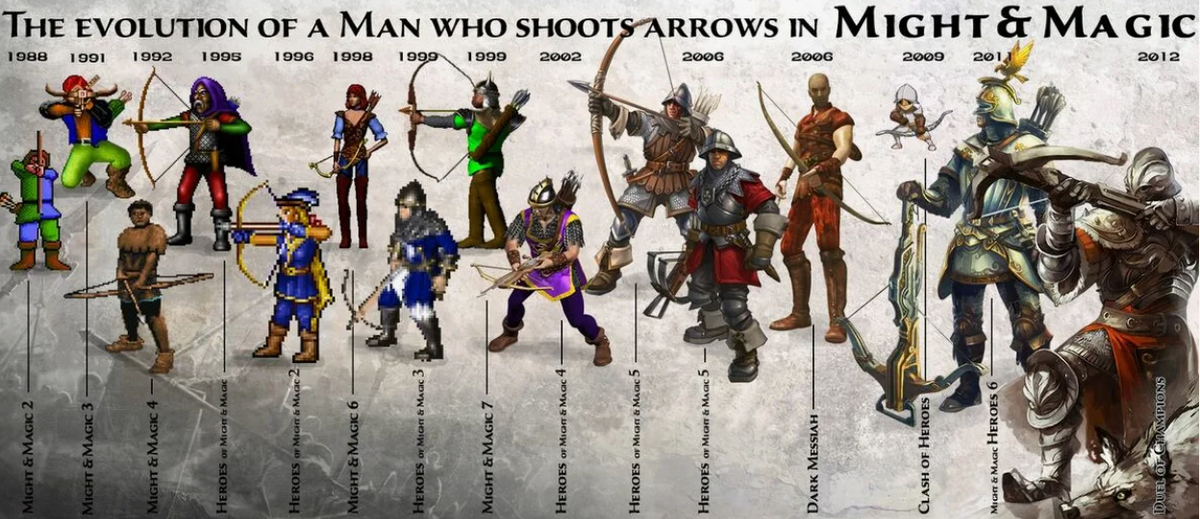 Эти простые стрелки стали настоящими долгожителями серии. В первых двух частях они скромно именовались лучниками и были основой армий человеческих фракций. С третьей части разработчики решили модернизировать их вооружение, превратив в арбалетчиков. Особенно интересна их эволюция в пятой части, где базовый вариант остался лучниками, а улучшенная версия получила арбалеты.
