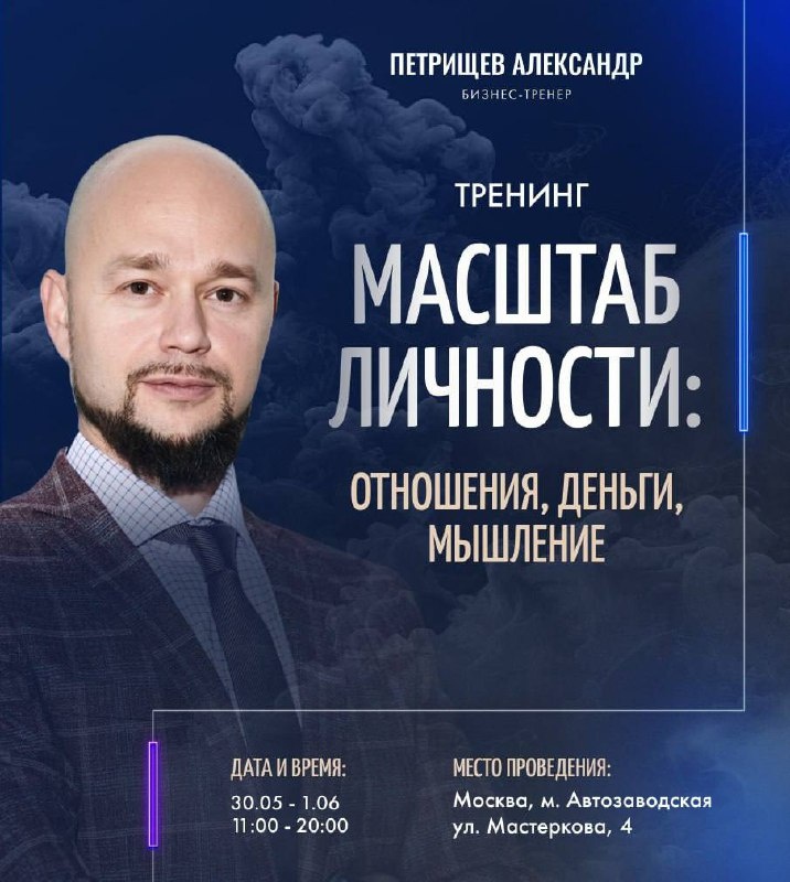 🔥Успей попасть на трансформационный тренинг за 10 000₽ вместо 50 000₽ В честь 20-летия тренерской деятельности Александра Петрищева — уникальная МЕГА АКЦИЯ! 🏷️Только с 30 мая по 1 июня в Москве пройдет легендарный офлайн-тренинг «МАСШТАБ ЛИЧНОСТИ: отношения, деньги, мышление», и вы можете попасть на него всего за 10 000₽ (вместо стандартных 50 000₽)! На тренинге мы проработаем: - Мышление через крутейшие бизнес-игры! - Отношения через глубинные практики! - Стратегический план достижения цели! - Способы увеличения дохода! - Уверенность, лидерство и эмоциональный интеллект! 👉Условия участия в акции: 1. Стоимость участия — всего 10 000₽ (при 100% оплате) на базовом тарифе. 2. Скидка 30% на другие тарифы 3. Даты тренинга: 30.05–01.06 4. Количество мест по акции строго ограничено! 5. Можно приобрести участие для друзей, партнёров и близких Не упустите свой шанс — это ваш трамплин к новой жизни! Регистрация https://clck.ru/3M7DCt P.S. Такие цены — редкость, и места заканчиваются о
