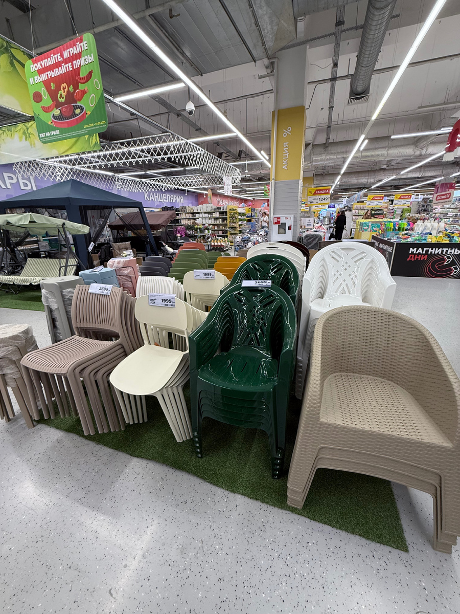 Прошлась по выставочным рядам и заметила большие комфортные кресла для релаксации на улице — одно обойдется в 2999 рублей. Ещё понравился удобный металлический шезлонг за 1999 рублей, выдерживает до 120 кг и оборудован качественной влагозащитной тканью, похожей на оксфорд. Неплохое предложение, учитывая цену и качество. Может пригодиться тем, кто часто бывает на даче или планирует отдых на открытом воздухе.