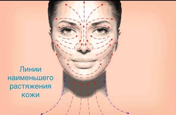 На картинке вы видите ЛИНИИ НАИМЕНЬШЕГО РАСТЯЖЕНИЯ КОЖИ ЛИЦА И ШЕИ.