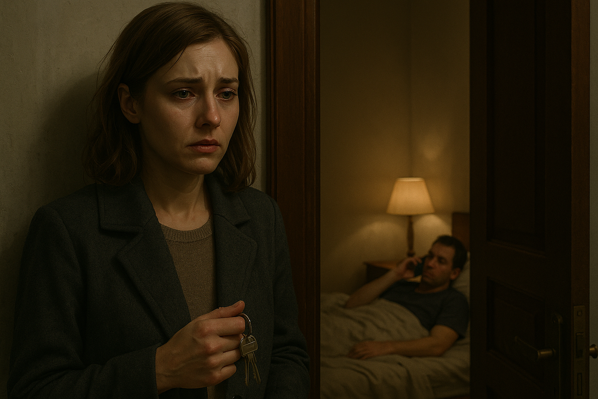 На следующий день она вернулась домой — спокойная, холодная, как лёд. Муж лежал на диване, увидев её — слегка напрягся, но быстро улыбнулся: