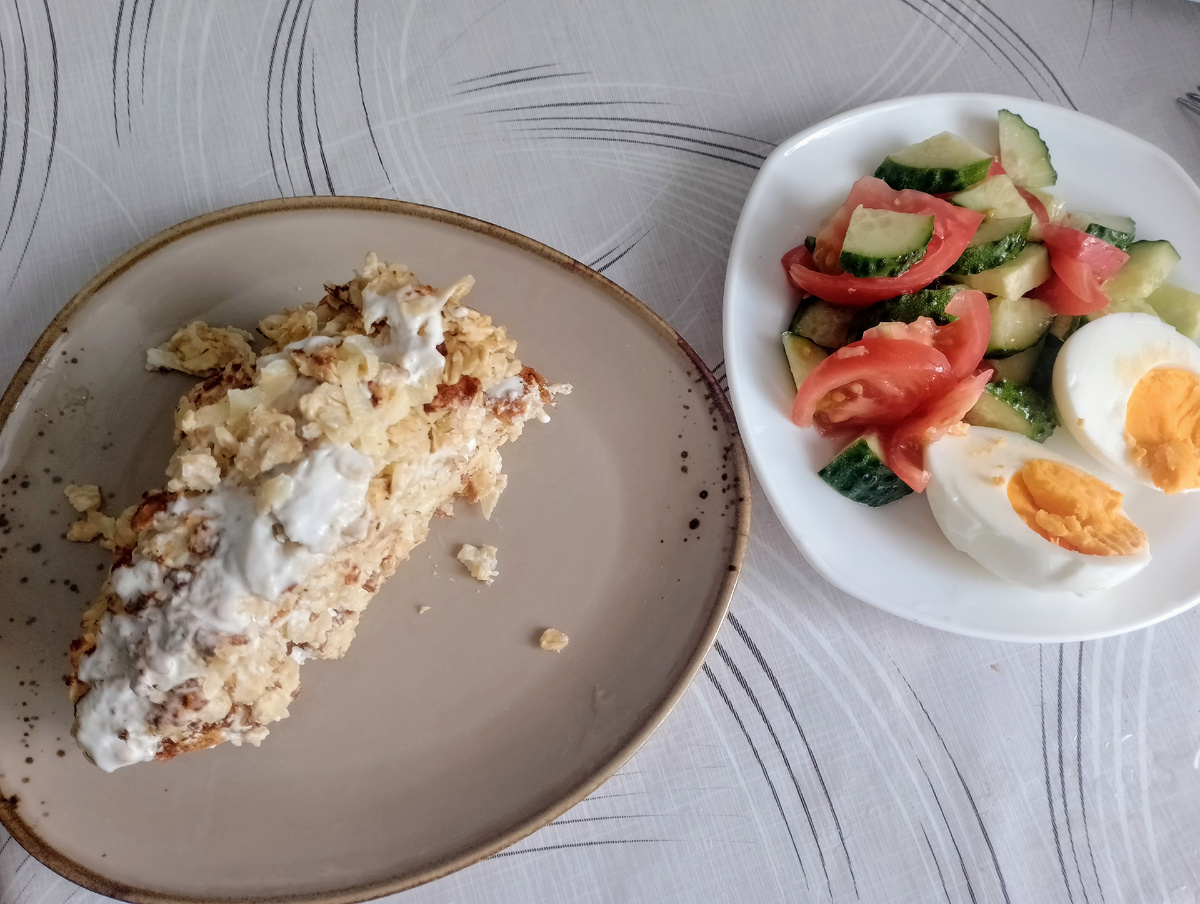✅ Овсяноблин с яблоком, собранный в виде тортика. Промазка между коржами сметана + стевия.