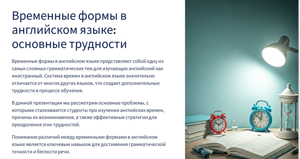 Посмотрите видео и ответье на следующие вопросы: 1. Сколько времен английского языка разбирается в презентации? 2. В чем заключаются особенности использования времен? 3. Какие основные проблемы в изучении времен? 3. Какие советы приводятся для практики? 4. Какие практические упражнения есть для практики времен?