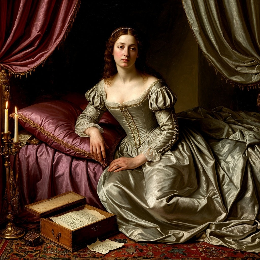 - Они взяли не только рубины, - прошептала герцогиня, кутаясь в полупрозрачный камзол. – Они украли письма… королевские письма.