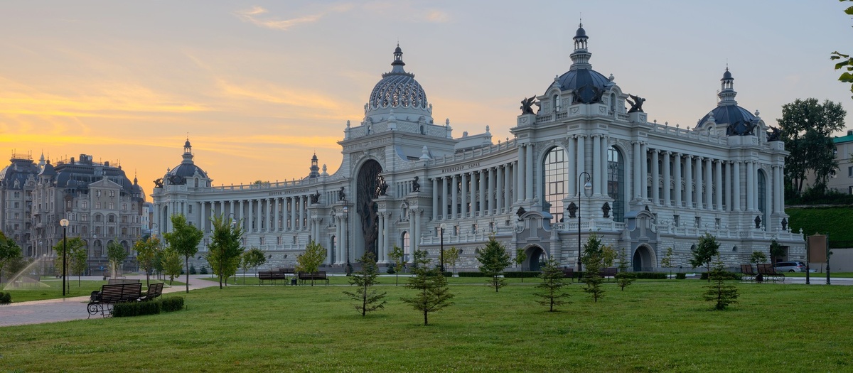 Казань — город, где переплетаются эпохи, культуры и религии. Начнём с Дворца земледельцев — его величественный фасад с колоннами и светящимися арками завораживает, особенно на закате. Затем отправимся к Казанскому университету, где гуляли Лобачевский и Толстой, а стены до сих пор хранят дух научных открытий.