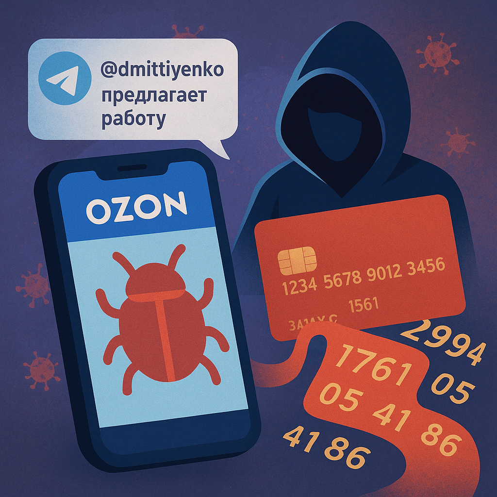 ‼️В Telegram появился фейковый аккаунт @dmittiyenko («Дмитрий»), который предлагает «фриланс-работу» по оформлению товаров на маркетплейсах. В личном чате он запрашивает ваши ФИО, телефон, навыки и… банковские реквизиты для «выплаты вознаграждения». Далее вы получаете ссылку на .APK под видом официального приложения Ozon. Интерфейс полностью копирует фирменный дизайн и уведомления. После установки софт просит ввести личные данные и реквизиты карты. На самом деле это троян: он получает полный доступ к счёту и списывает деньги, даже если вы не вводите код подтверждения. Злоумышленник настоятельно просит не сворачивать приложение — именно в этот момент происходят мошеннические операции. Экспертная проверка APK выявила вирус, способный похищать данные и средства. Как защититься? • Не переходите по сомнительным ссылкам. • Скачивайте приложения только из официальных магазинов. • Никому не передавайте данные карты. • Включите уведомления банка и следите за операциями в режиме реального време